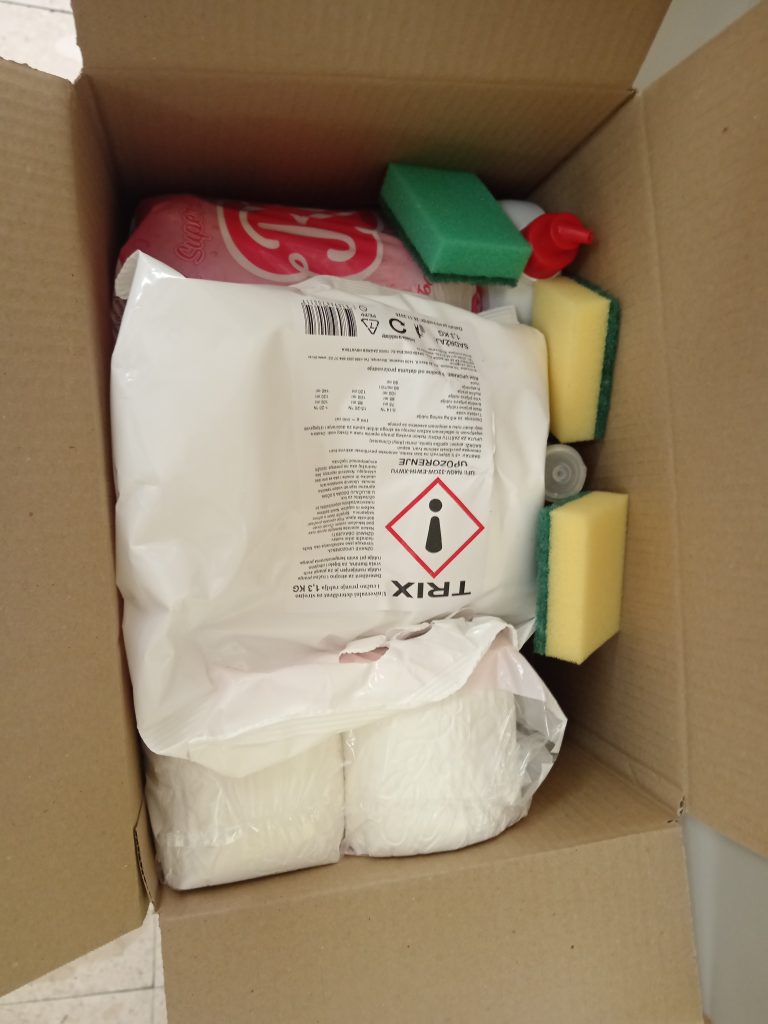 U paketima se nalaze prehrambeni proizvodi tjestenina, juhe, mesni naresci, paštete, riblje konzerve, mlijeko, ulje, gotova jela, konzervirani grah, šećer, džem, keksi, čaj i kukuruzne pahuljice. Paketi higijene sadrže potrepštine koje uključuju toaletni papir, sredstvo za pranje posuđa, deterdžent za pranje rublja, spužve za pranje posuđa, sredstvo za čišćenje sanitarija i univerzalno sredstvo za čišćenje i dezinfekciju.